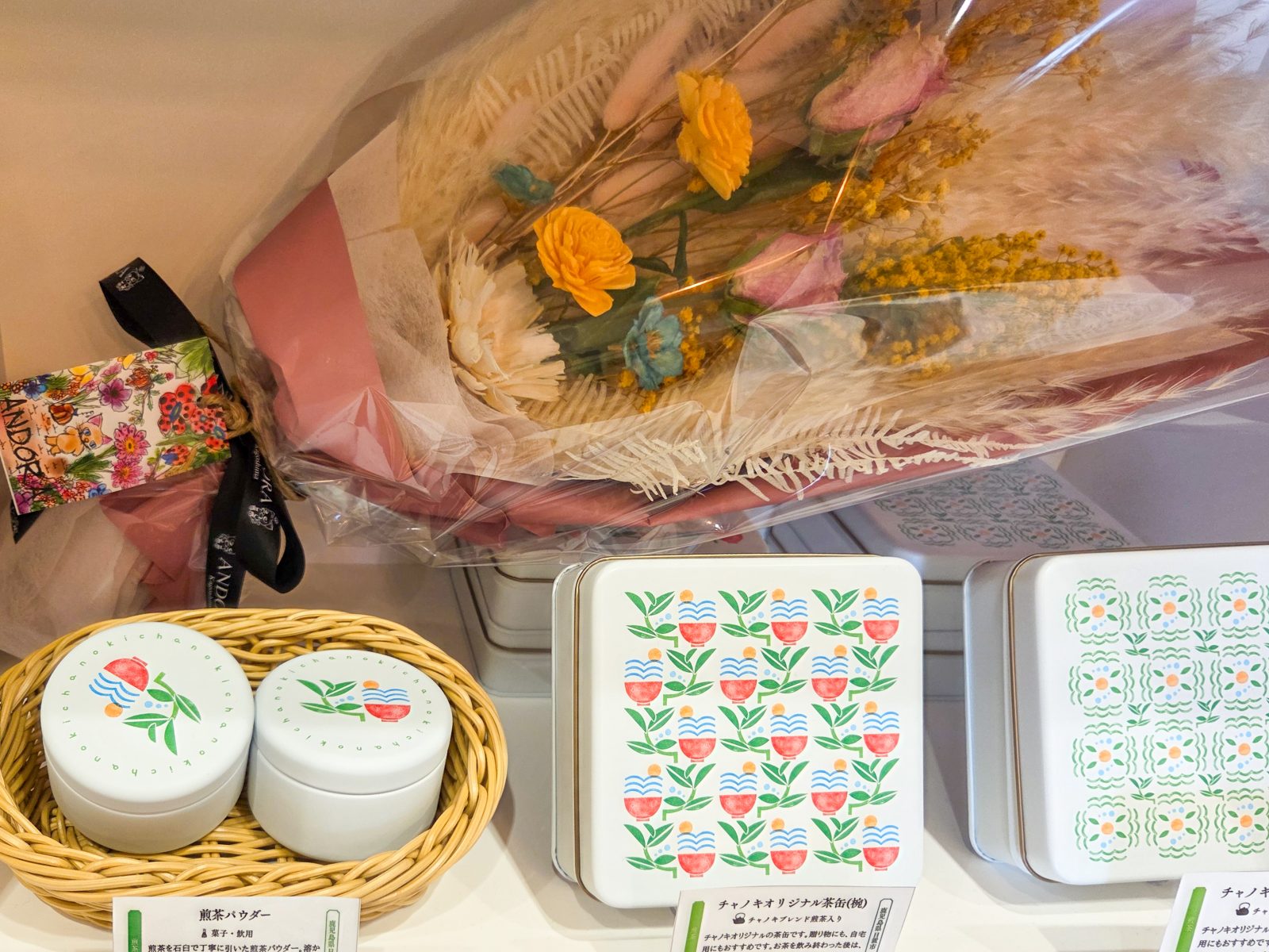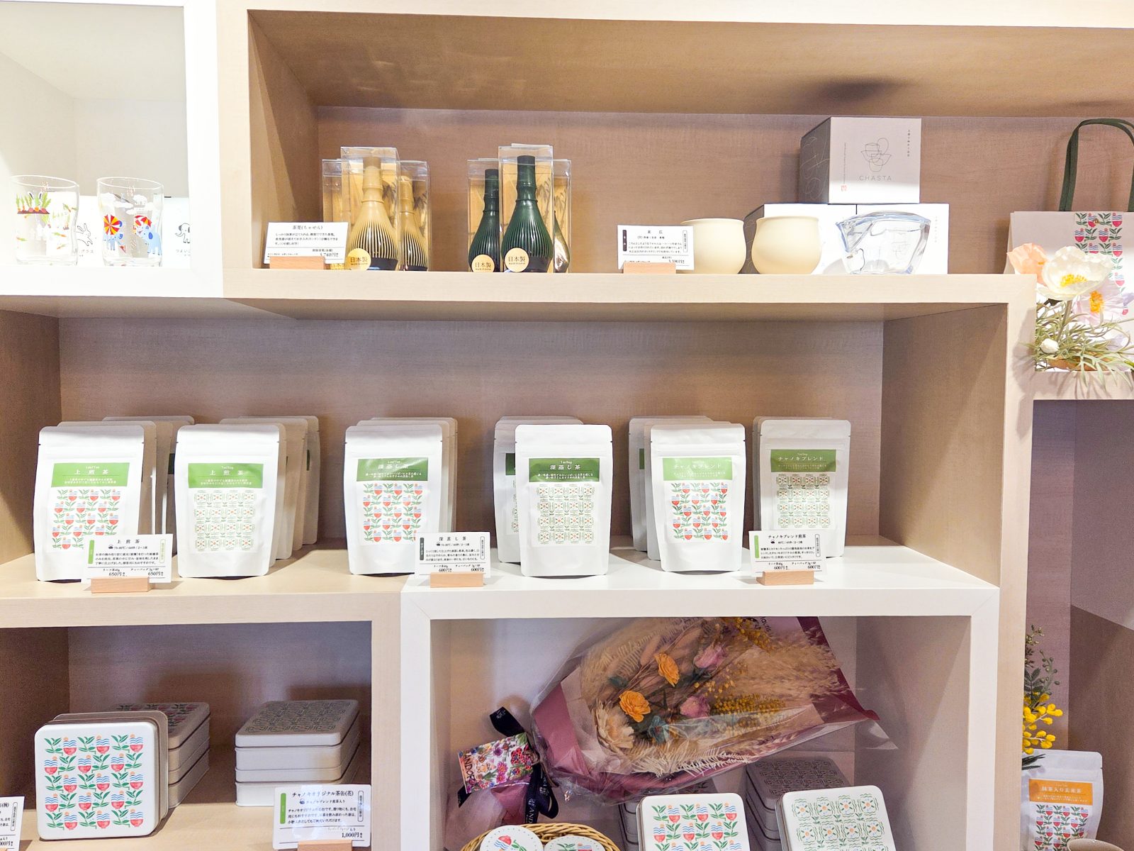 ギフト用の商品やラッピング、カフェで使用している器や湯飲みなど、